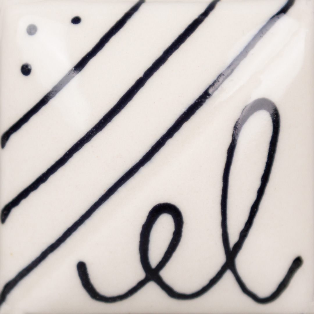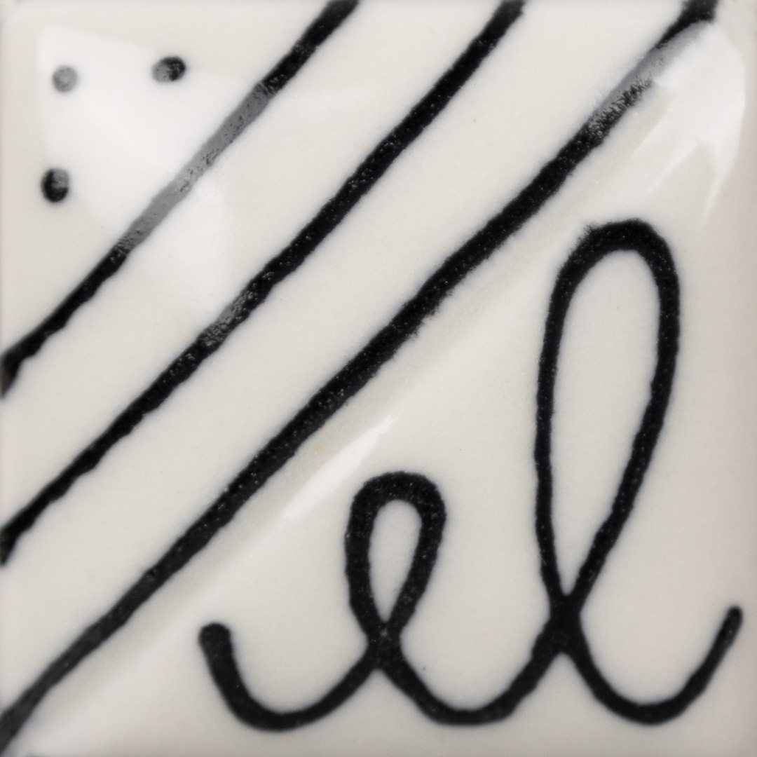 Designer Liner is clay based and heavily pigmented. The metal writer tip allows for ultimate control to draw ultra-fine or bold lines, typography and intricate illustration, or apply with a brush to create watercolour or ink wash effects. Designer Liner will fire matte when glaze is not applied over top. The first image shows results at cone 06 (oxidation), the second images shows results at cone 6 (oxidation) and the third image shows results at cone 10 (reduction).