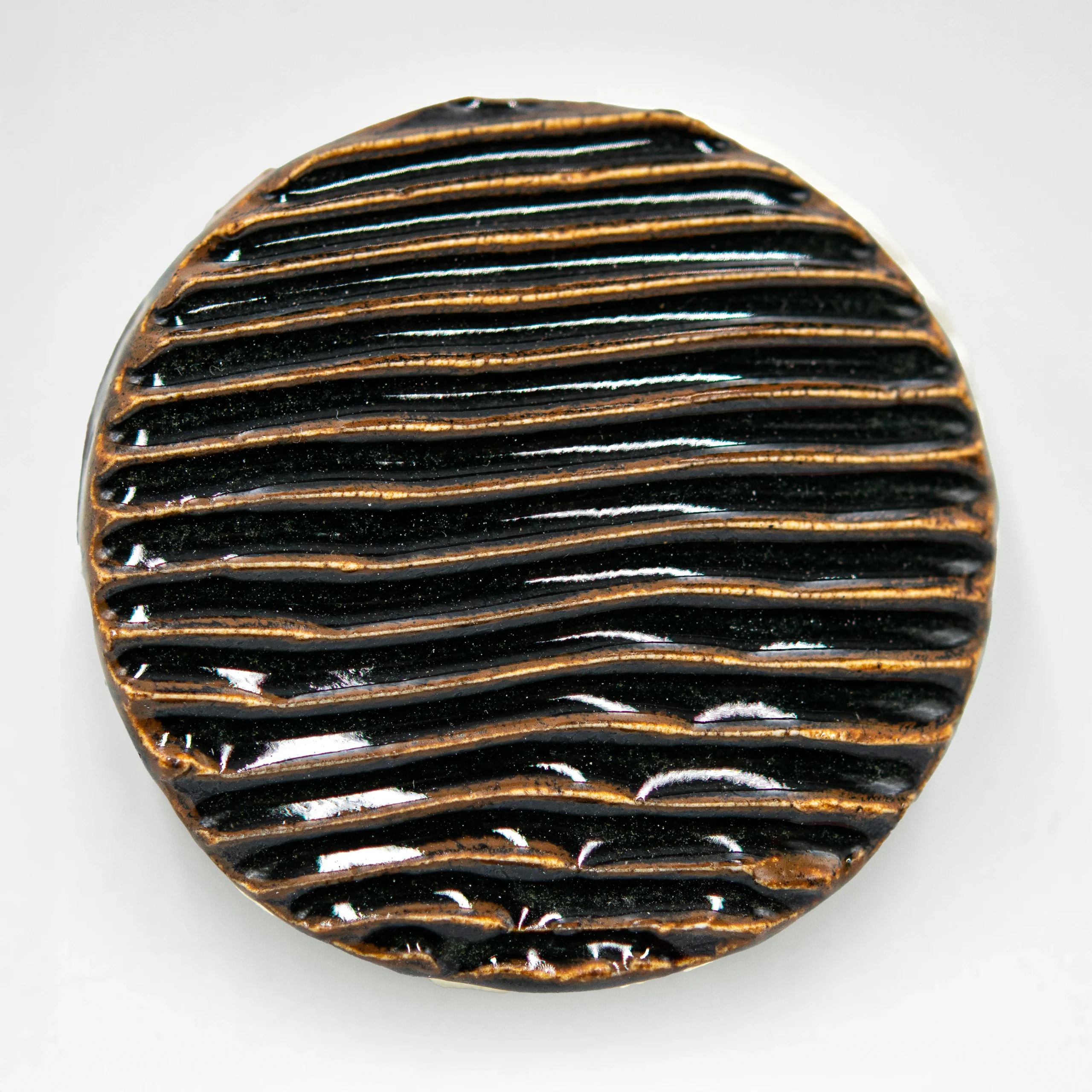 - Image shows brush-on glaze on Clayworks JB1 Porcelain Stoneware Clay (JB1) and fired to 1280ºC